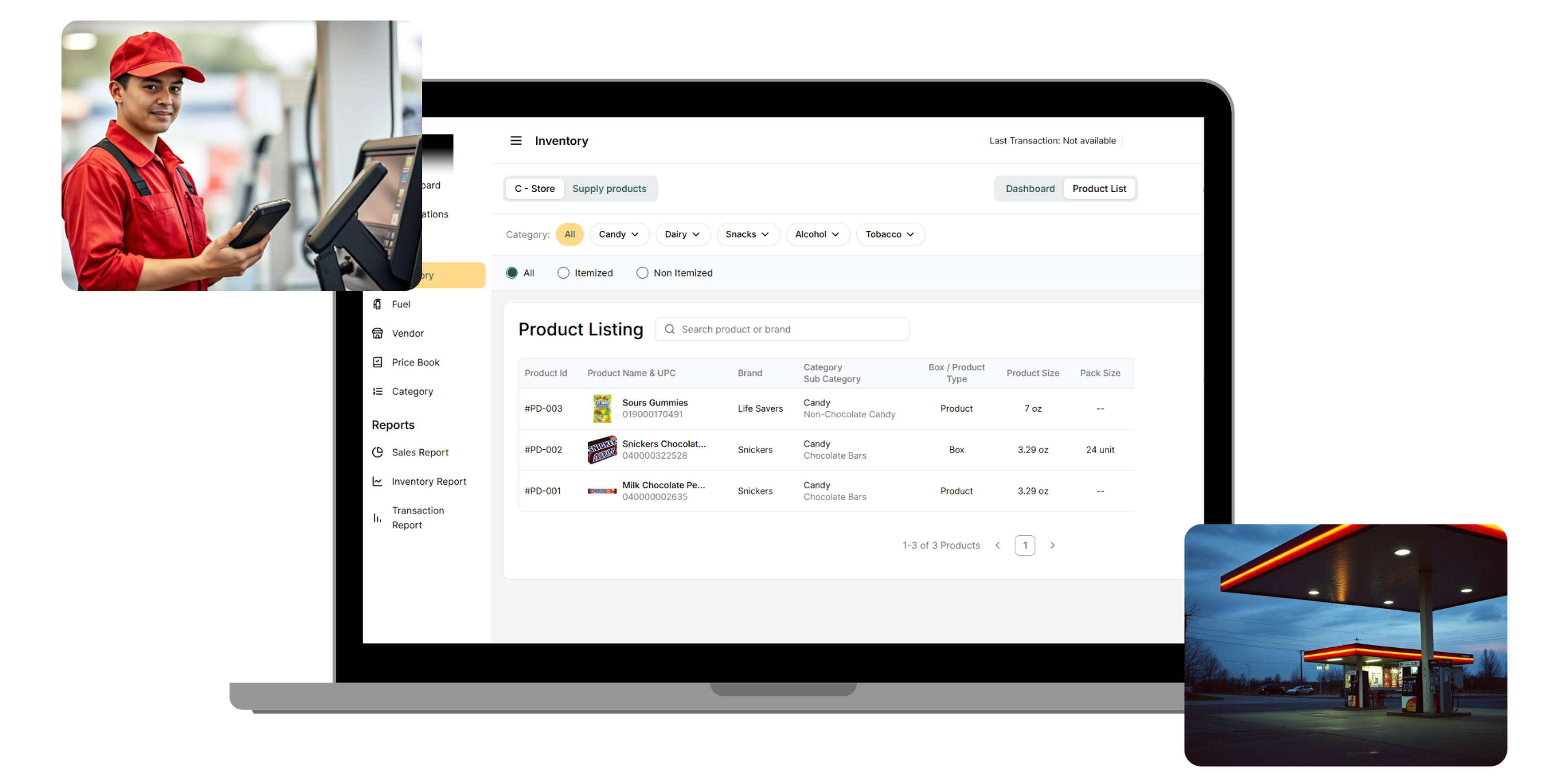 - Inventory tracking is now centralized across fuel, C-store, and supply items, with real-time updates